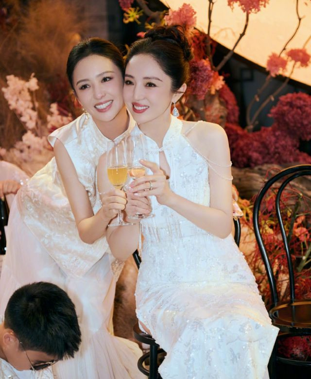 同日,董璇晒出结婚照后,她的好闺蜜、知名女演员佟丽娅同样在社交账号上晒出了参加董璇婚礼时的照片,并在发文中表示:“我的璇儿,一直幸福下去!永远快乐!我这儿永远是你的娘家港湾”。