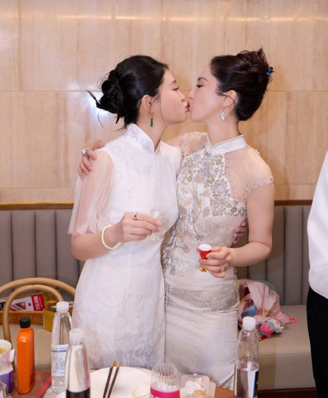 和董璇关系超好的她,在两人合照时,不仅有相互怀抱的合影,关系超好的两人还在拍摄时亲亲,这样的友谊真是太令人羡慕了!